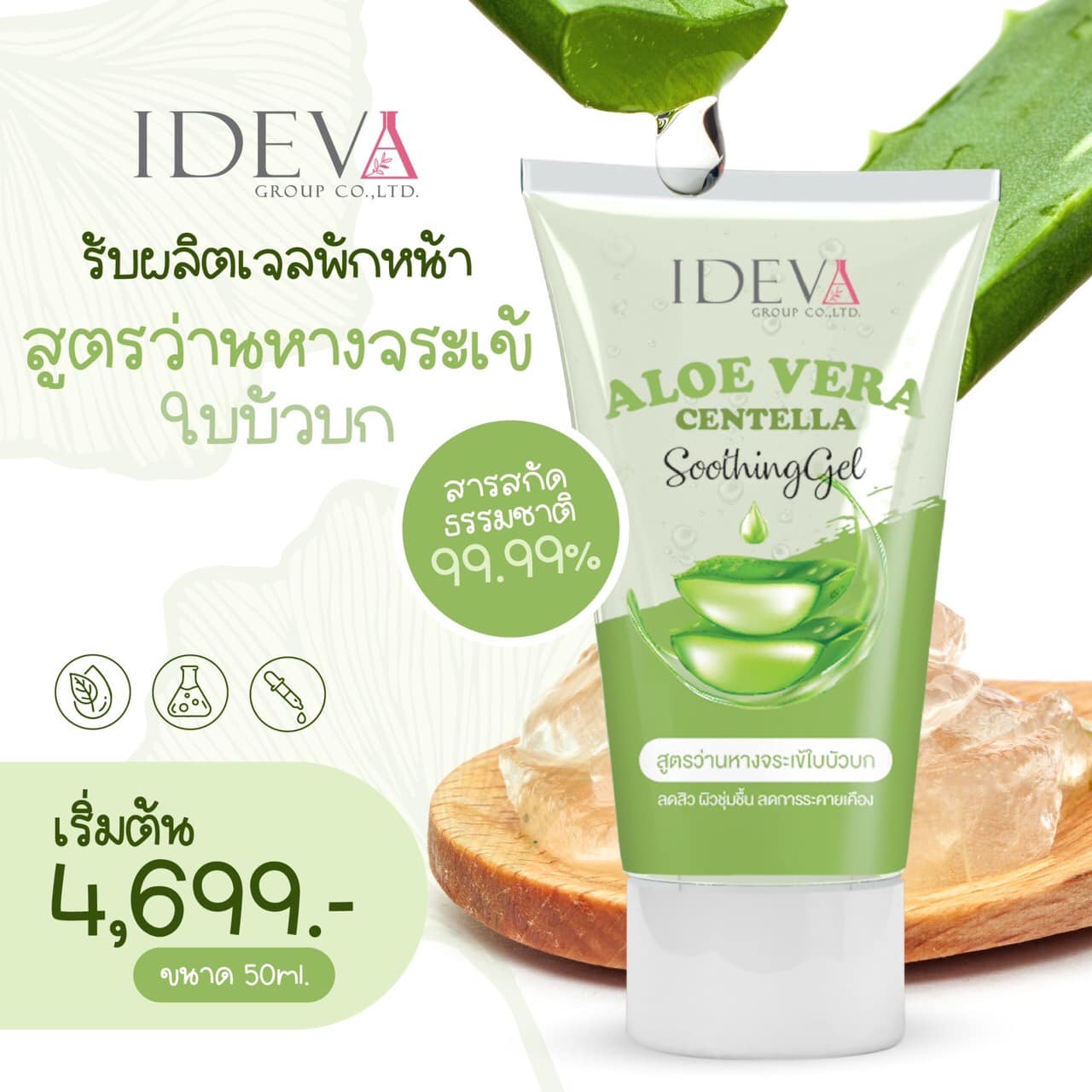 สรรพคุณ : เจลบำรุงผิวหน้า สูตรอ่อนโยน สารสกัดหลักจากธรรมชาติ 99.99% ช่วยลดสิว บำรุงผิวให้ชุ่มชื้น ลดการระคายเคือง