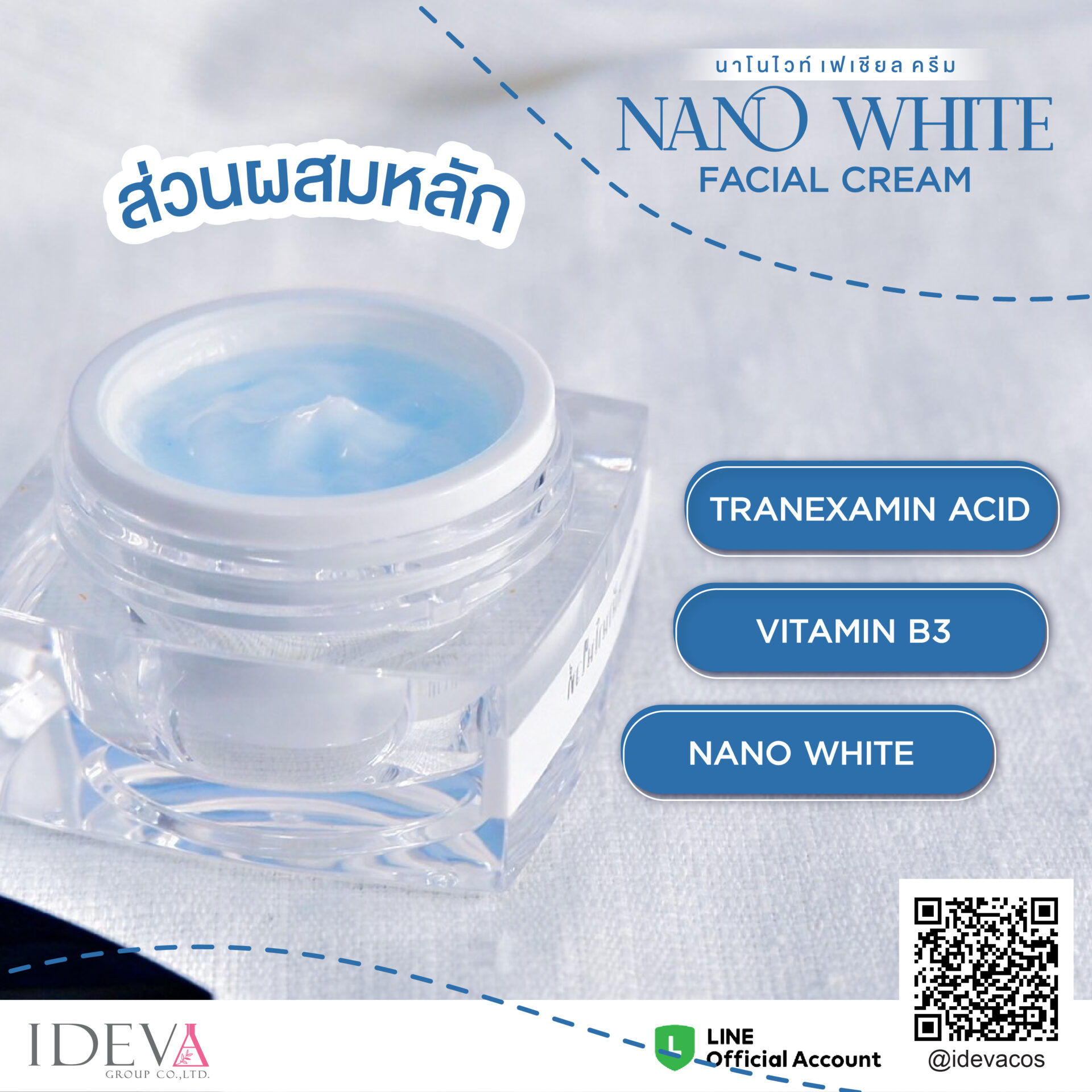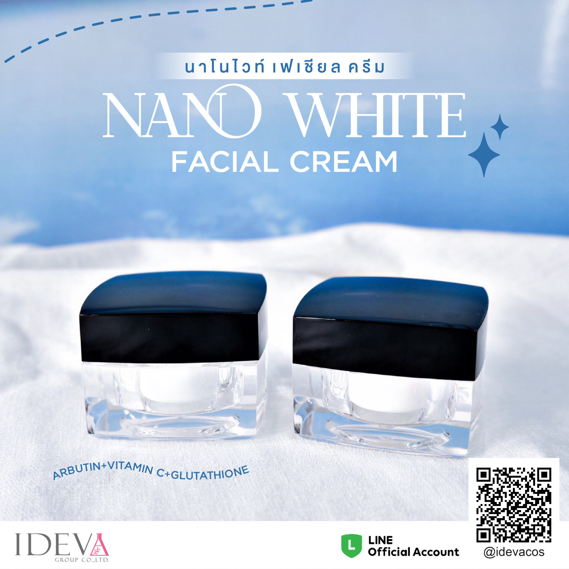 3.Nano White (นาโนไวท์) – สารสกัดที่ทำให้มีอนุภาคเล็กระดับนาโน เพื่อให้ซึมเข้าสู่ผิวได้ง่ายขึ้น โดยมีส่วนประกอบหลักคือ อาร์บูติน,วิตามินซี,กลูต้าไธโอน เป็นการรวมสารทำให้ขาว ยับยั้งกระบวนการส้รางเม็ดสี ปรับผิวให้สว่างกระจ่างใส ต่อจ้านอนุมูลอิสระ ต่อต้านริ้วรอย